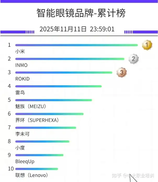 据京东统计,今年双11期间,3C数码品类中成交额增速排名前三的分别是智能眼镜(346%)、数码相机(238%)和运动相机(220%)。《科创板日报》记者查阅京东智能眼镜热销榜单发现,排名前五的品牌依次为小米、ROKID、影目科技IMMOGO3、雷鸟和影目科技IMMOGO2。数据显示,小米AI眼镜在近30天内售出2000件,影目INMO多款眼镜总销量突破1500件,ROKID多个型号的眼镜也累计售出逾1000件。