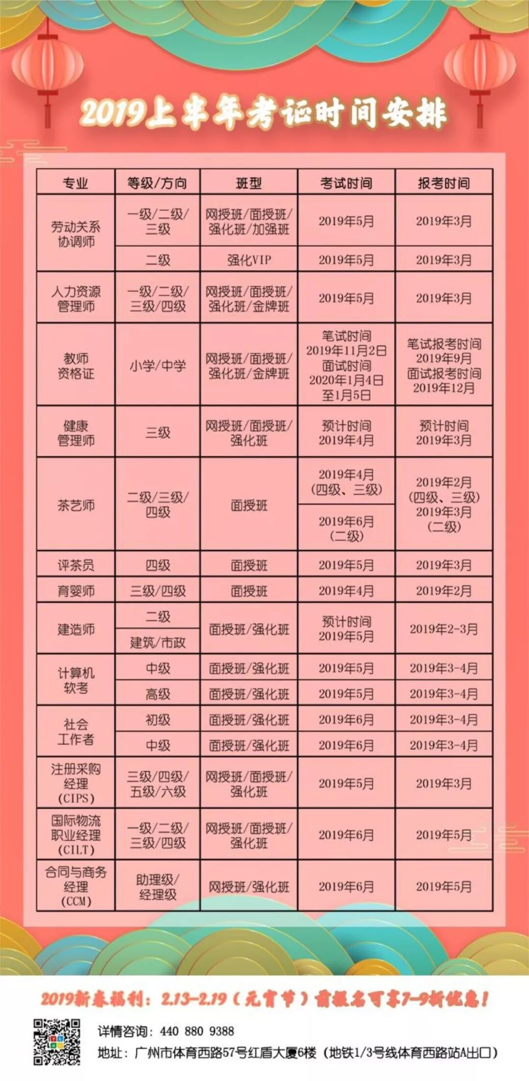 2019上半年考证时间安排,有你想要考的职业吗?各位需要考证的亲要保存起来哦!