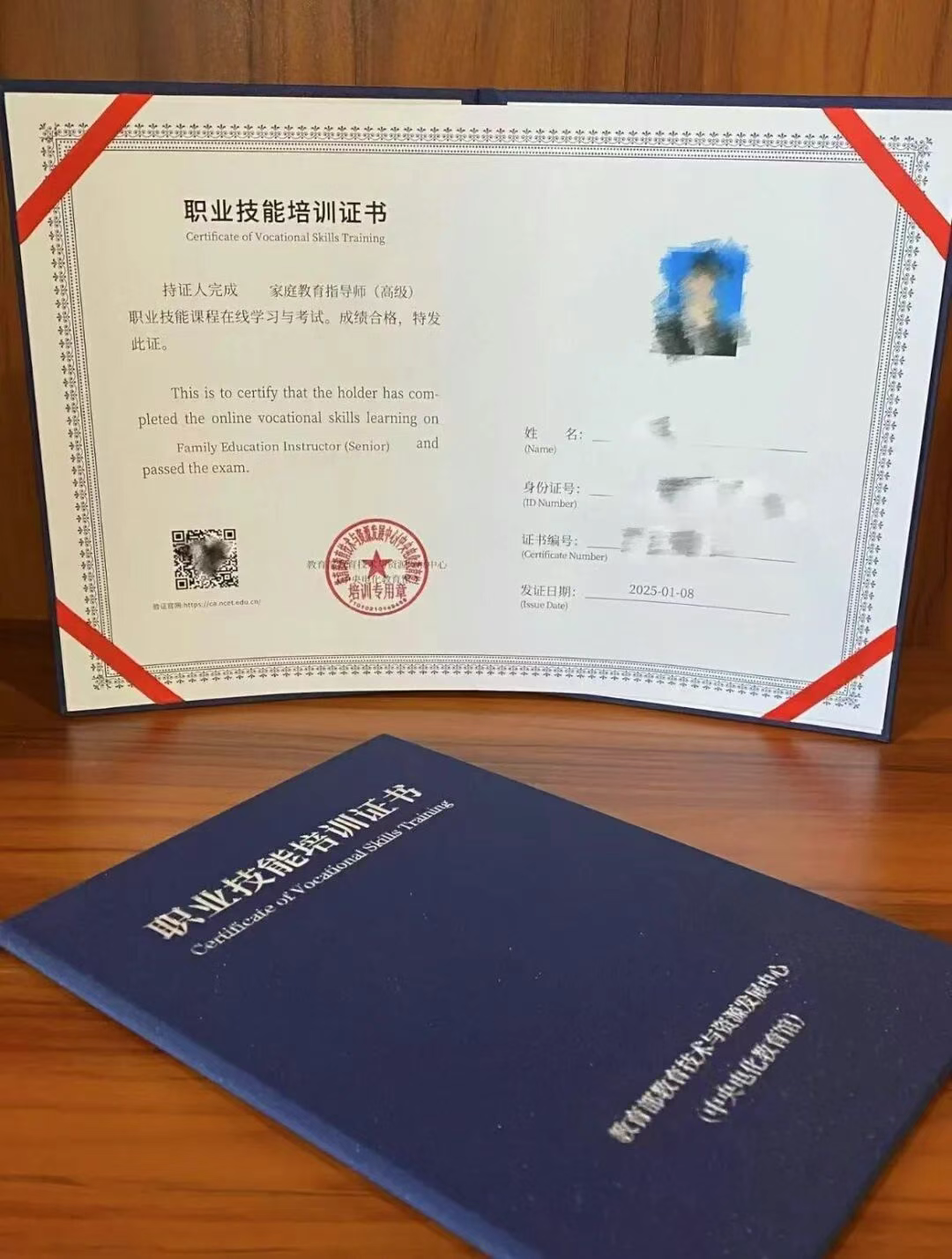 一张由权威单位颁发的专业技能证书,作为学习经历的证明。