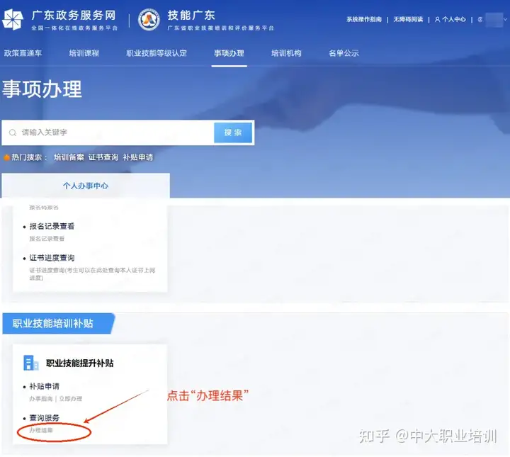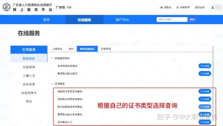 https://ggfw.hrss.gd.gov.cn/OUPX/#/matterHandling