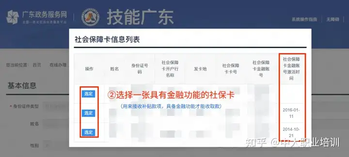 3️⃣ 如果有多张社保卡,会弹出社保卡信息列表,选择一张具有金融功能的社保卡。