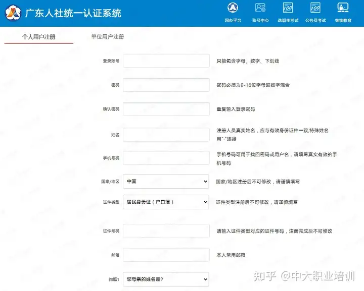 ◆ 首次登录者可以在此界面进行个人注册获取用户名和设置密码。