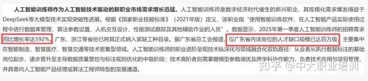 数据显示,2025年第一季度人工智能训练师的招聘需求同比增长率达592%。据广东省总工会报道,仅广东省内该岗位的人才缺口规模已达百万级,而且广东省份已将其正式纳入紧缺工种目录。在深圳强劲的产业政策驱动与实实在在的千万级人才缺口下,投身人工智能训练师这一职业,无疑是抓住时代机遇、抢占职业高地的明智选择。