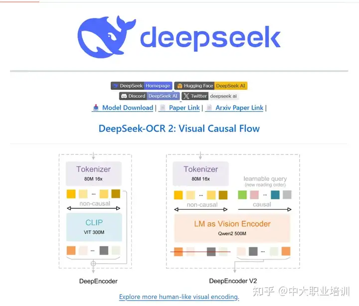DeepSeek团队发布《DeepSeek-OCR 2: Visual Causal Flow》论文,并开源DeepSeek-OCR 2模型,采用创新的DeepEncoder V2方法,让AI能够根据图像的含义动态重排图像的各个部分,更接近人类的视觉编码逻辑。