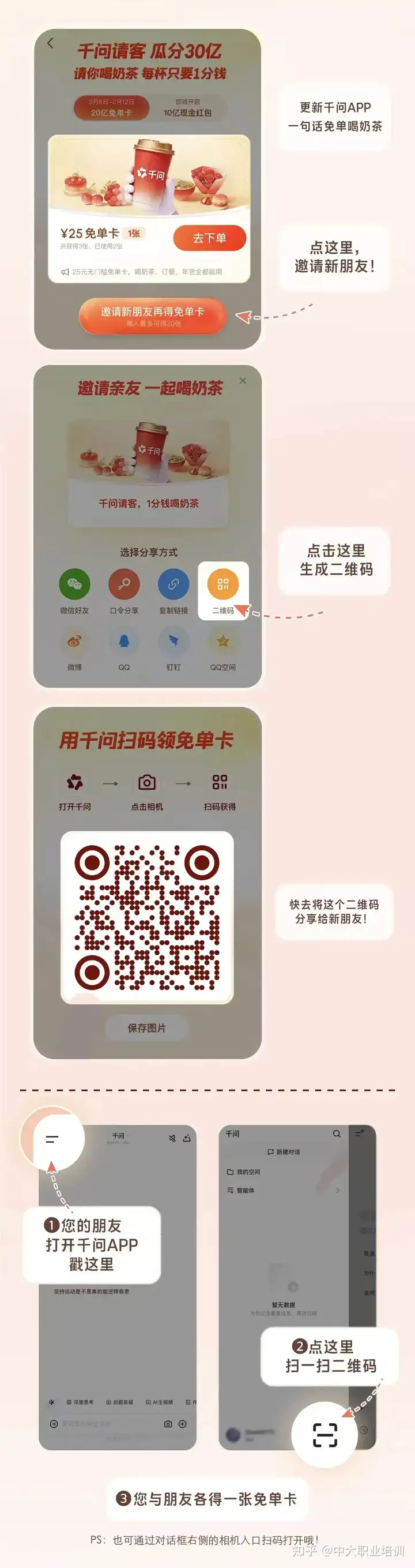 2.邀请好友下载千问App,双方各得1张25元免单卡,单人最多能领21张,折算下来足足525元无门槛福利!