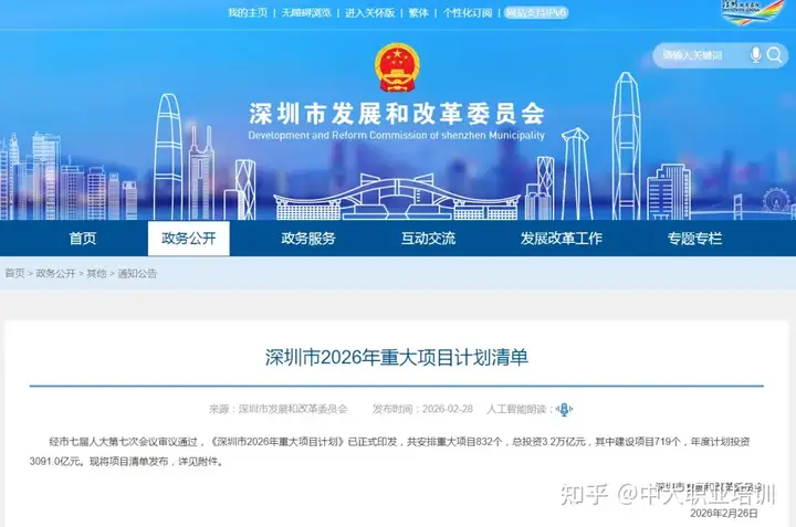 近日,深圳市2026年重点项目计划清单公布!
