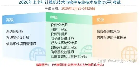 1、报名网址:2026年计算机软考计划刚刚公布!系统集成项目管理工程师5月和10月开考!附报考流程