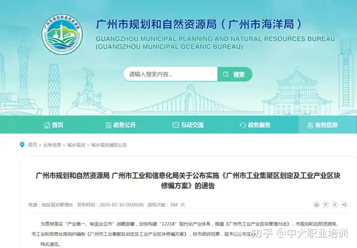 2026年3月10日上午,《广州市工业集聚区划定及工业产业区块修编方案》公布。