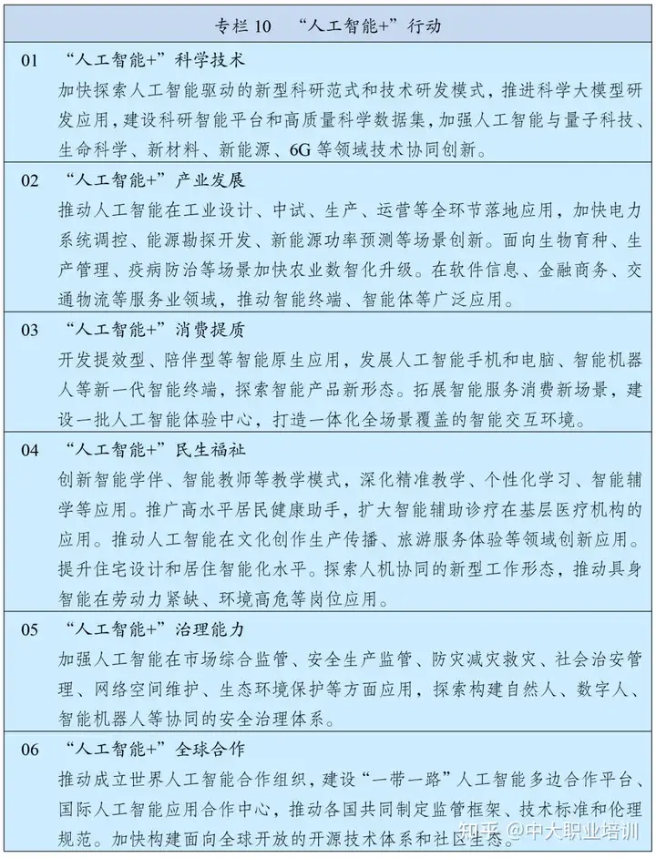 - 促进人工智能助力教育模式变革,有序推动数智技术在辅助诊疗、精准医疗、健康管理、医保服务、养老助残等场景的应用。深入实施全民数字素养与技能提升行动,强化人工智能的就业创造效应。
