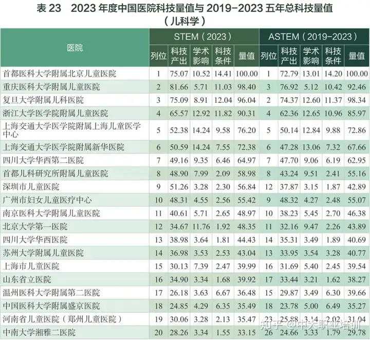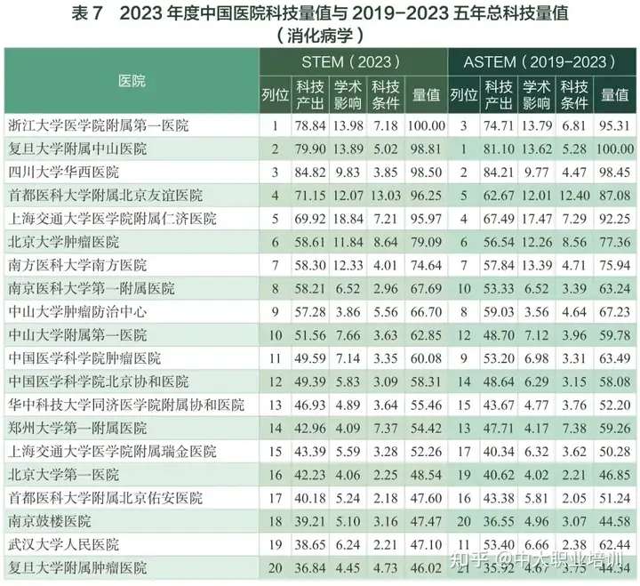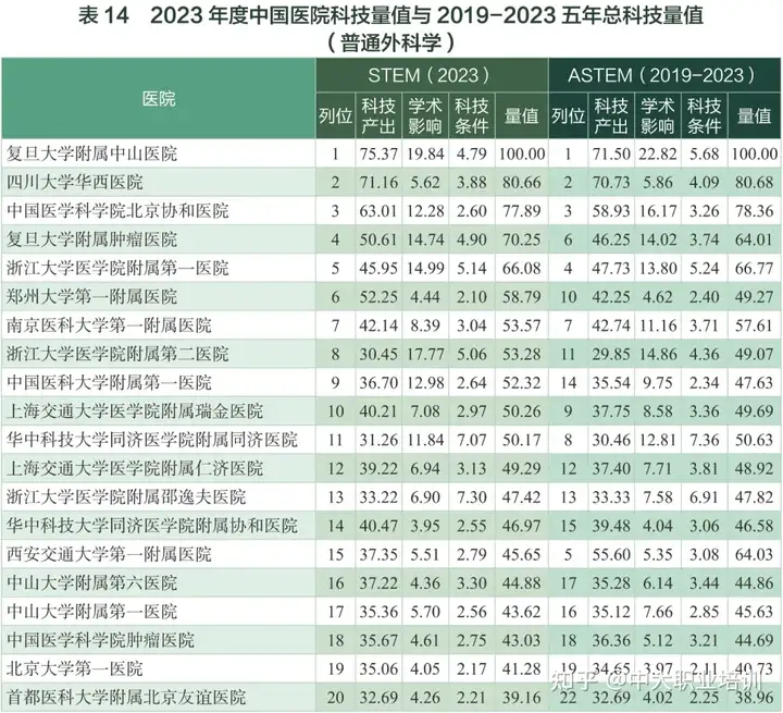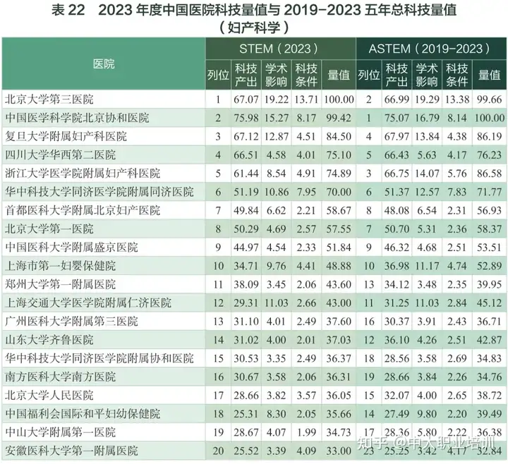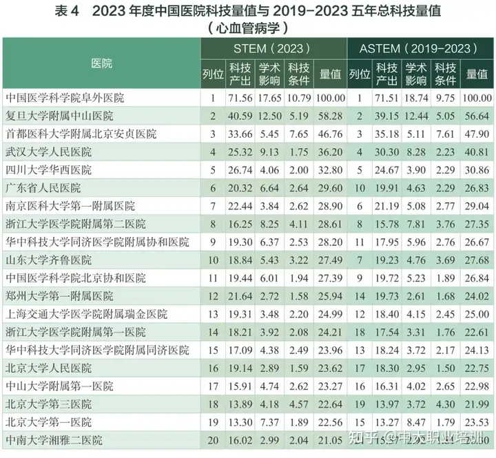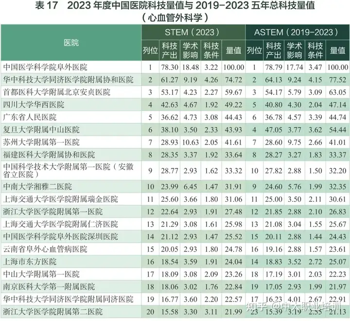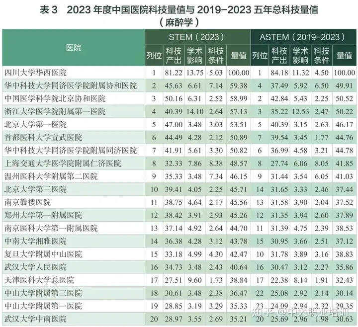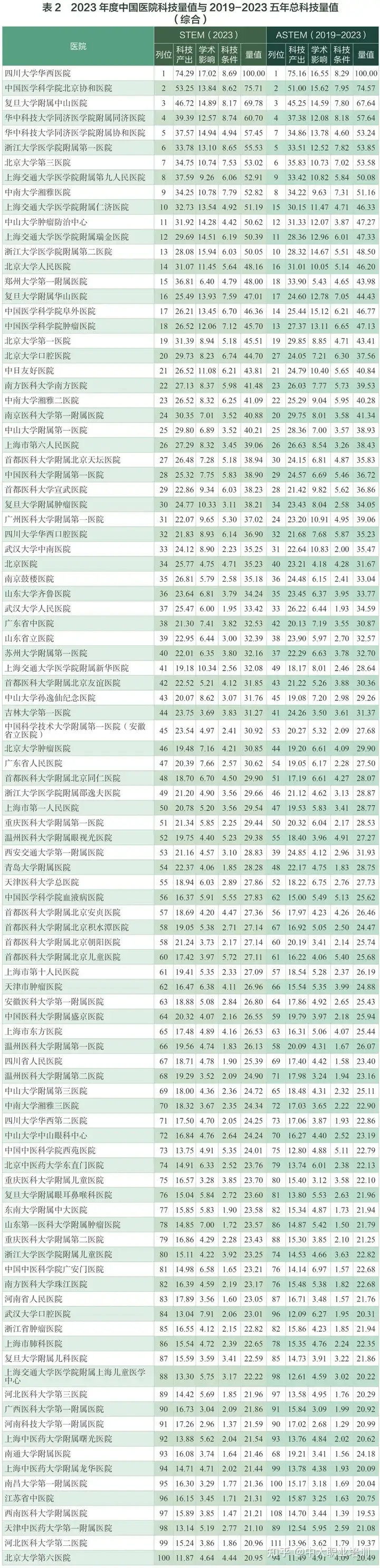 中国医院STEM沿用统一标准、统一来源、统一方法,从科技产出、学术影响和科技条件三个维度构建评价体系,其中,科技产出维度包括期刊论文、专利和标准以及论文引用等方面;学术影响维度包括科技奖励一级学术任职等方面;科技条件维度包括科研项目和科研平台等方面。共对我国2943家三级医院开展研究,评价结果分为两部分,一是综合科技量值;二是学科科技量值,涵盖心血管病学、呼吸病学等共34个临床医学二级学科及部分三级学科。