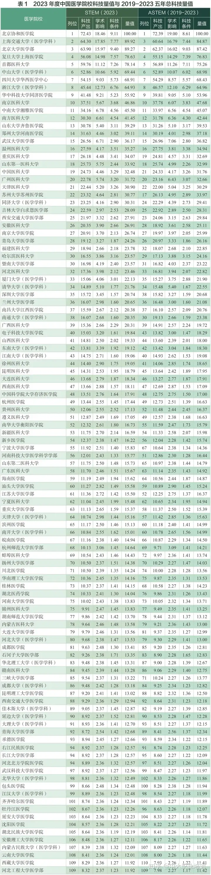 协和版《中国医学院校STEM/ASTEM排行榜》