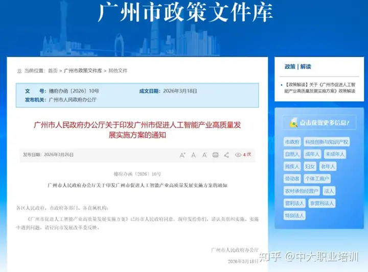 《广州市人民政府办公厅关于印发广州市促进人工智能产业高质量发展实施方案的通知》